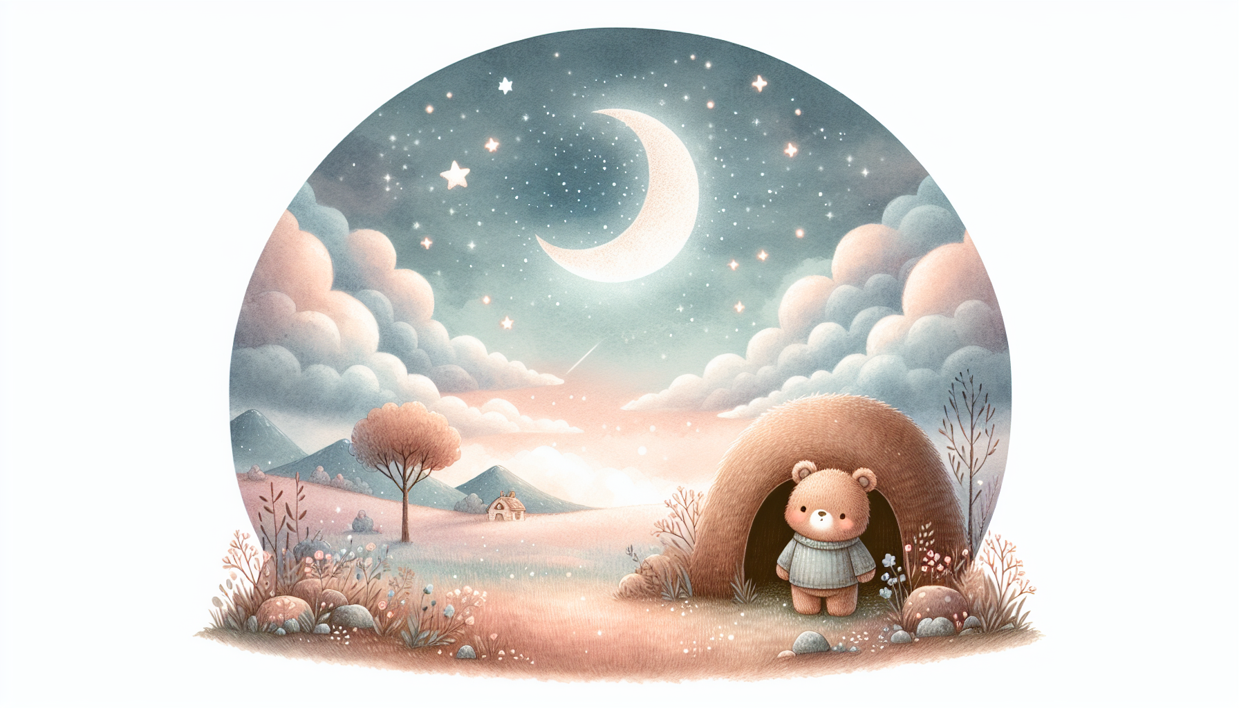 With a gentle hop, Benny closed his eyes and imagined he was soaring through the sky. He felt light as a feather, floating among fluffy clouds. The moon welcomed him with a warm glow, and Benny could see all the soft, shimmering stars around.