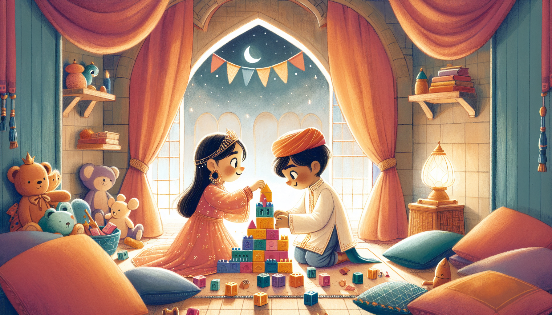 One sunny afternoon, while playing in his cozy room, Leo heard a soft knock on the door. It was his friend, Mia, the kind princess from the next castle over. "Can I play with you?" she asked with a smile.